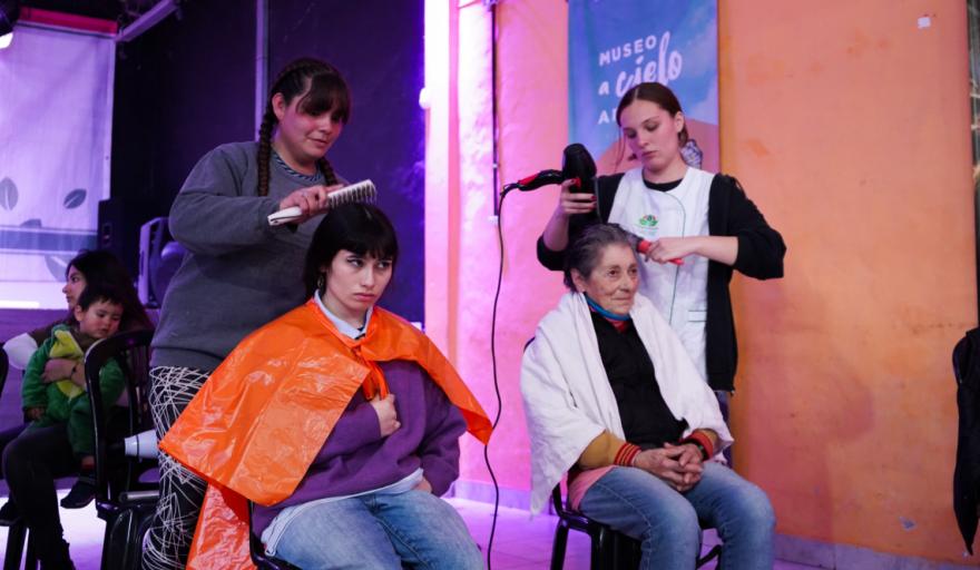 Entre las propuestas ofrecidas en el primer día, se llevó adelante una jornada gratuita de corte de cabello para mujeres mayores de 14 años a cargo del grupo de la profesora Paola Barrientos, donde las estudiantes del curso de peluquería de la Escuela Municipal de Artes y Oficios pudieron poner en práctica lo aprendido en las clases.