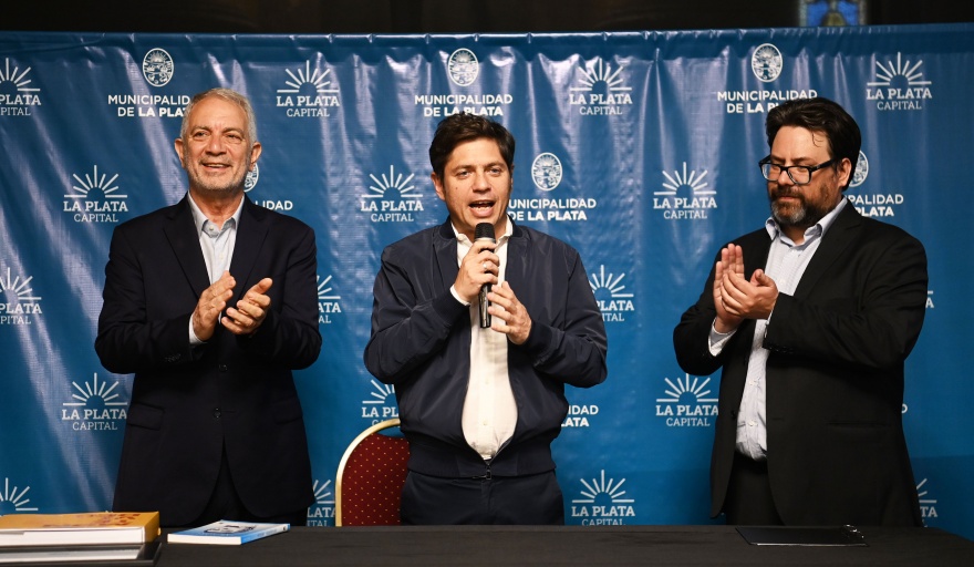 El gobernador de la provincia de Buenos Aires, Axel Kicillof, participó este sábado del acto de firma del convenio de hermanamiento entre las ciudades de La Plata y Montevideo. Fue en el Salón Dorado del Palacio Municipal, junto al intendente local, Julio Alak, y su par de Montevideo, Mauricio Zunino.