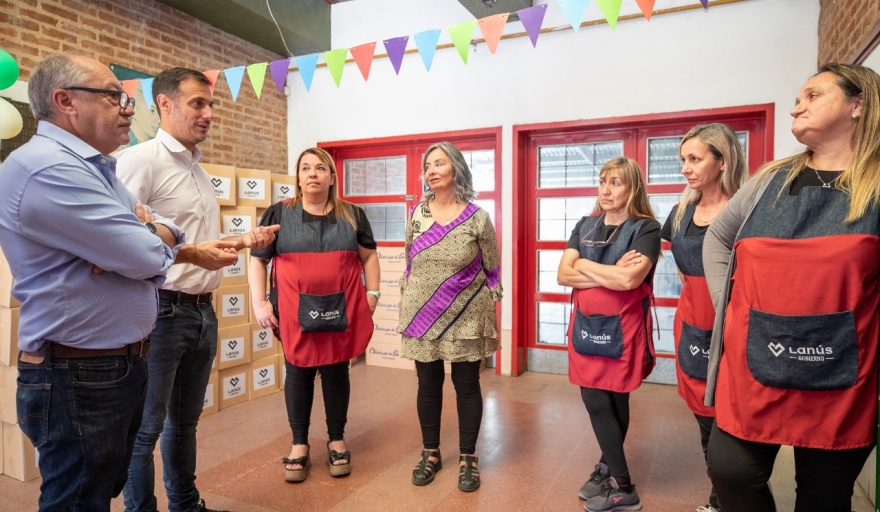 En el Centro Educativo N° 10 “Eva Perón”, situado en Murature 4114, Lanús Oeste, el Municipio anunció la entrega de Módulos Mesa, una caja de alimentos que será distribuida mensualmente a un total de 2.000 chicos y chicas que asisten a los 21 centros educativos municipales.