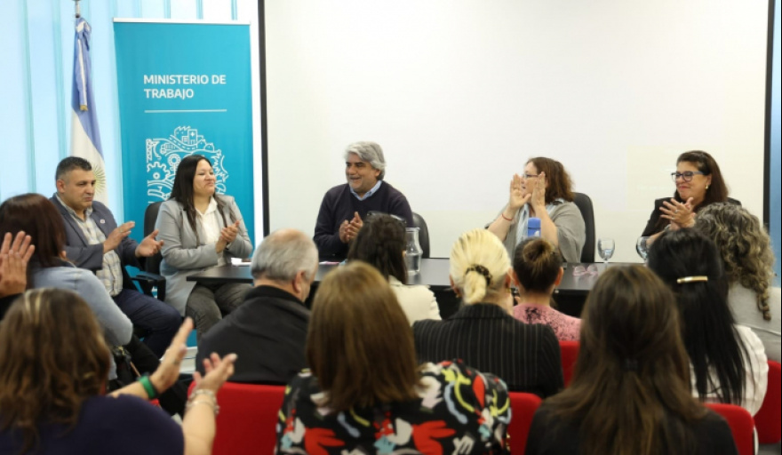 En el encuentro, el ministro Walter Correa y la jefa de Gabinete de la cartera laboral, Cecilia Cecchini, presentaron el protocolo marco que establece lineamientos para prevenir y abordar situaciones de acoso y violencia laboral en el sector público provincial, documento consensuado con el ministerio de Mujeres y la Secretaría General de Gobierno.