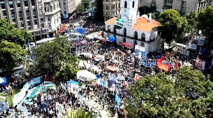 Trabajadores de servicios, industriales, de la Educación, Jubilados, desocupados, autoconvocados... colmaron la Plaza de Mayo y alrededores para dejarle un mensaje claro al Ejecutivo sobre su reforma laboral: "No es modernización, es precarización".