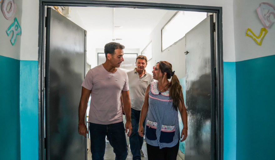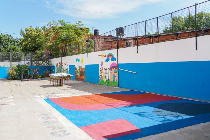 Por otra parte, en el Jardín N° 939 se colocó una superficie anticaída de caucho en el patio, además de ejecutar trabajos de pintura y en las instalaciones eléctricas; se sumó una mesada y grifería nueva en el sector de la cocina; y se avanza con el reacomodamiento del tendido sanitario correspondiente al abastecimiento de agua por bomba del establecimiento.